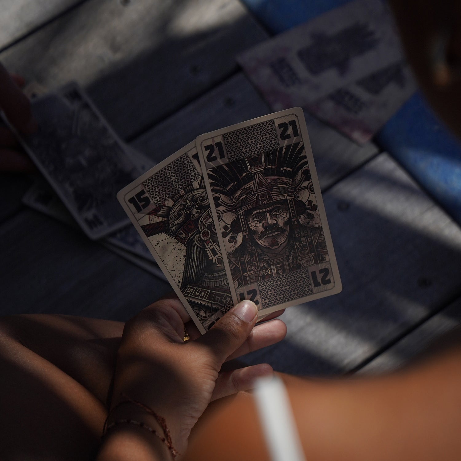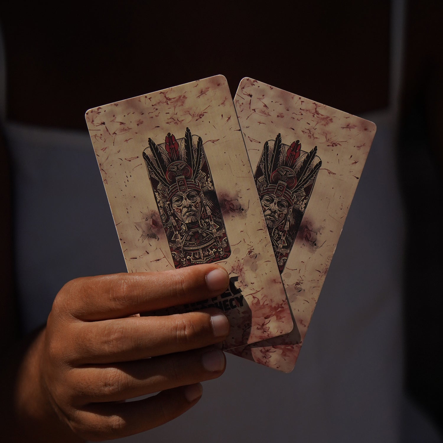 - 25 cartes illustrées à l’effigie des divinités et symboles aztèques